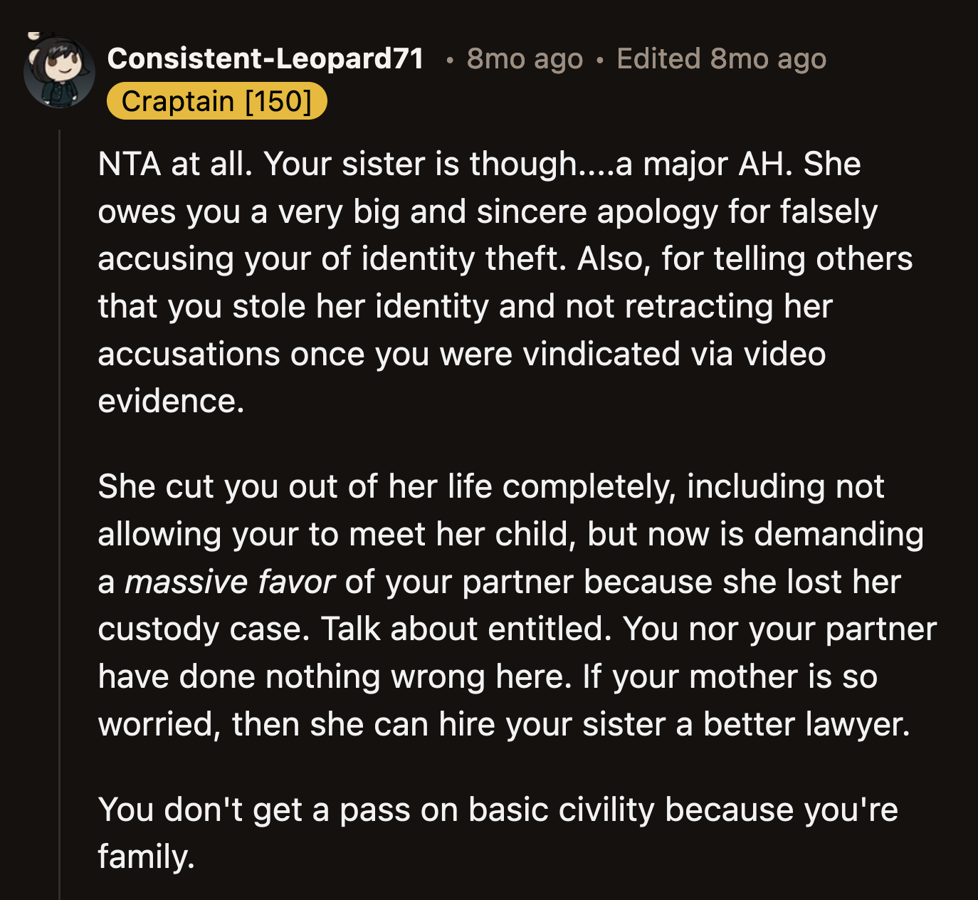 Woman Falsely Accuses Sister of Identity Theft and Now Expects Her to Help Regain Custody of Her Daughter