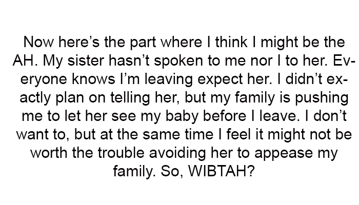 WIBTA For Not Letting My Sister See My Baby Before Moving Out Of State