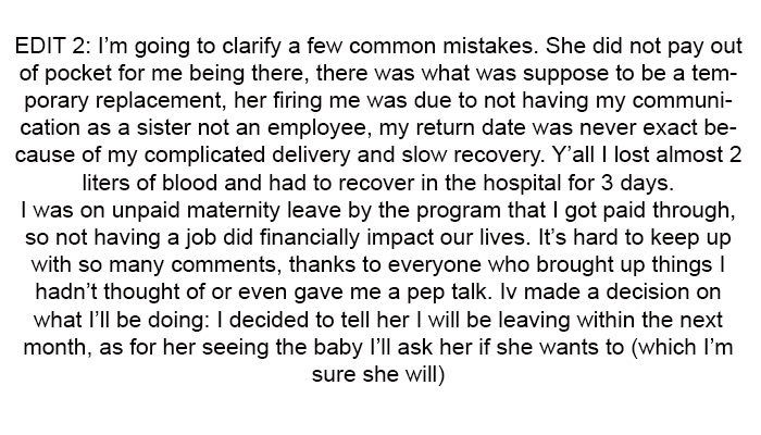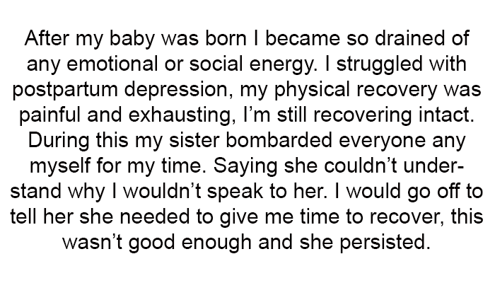 What do you think about this challenging situation? Should the new mother prioritize her well-being and move without informing her sister, or is it important for family unity to let Lilly know and see the baby?