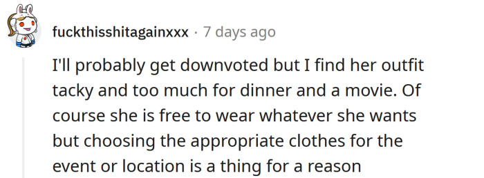 The Redditor asked if she's an a**hole for wearing a provocative outfit to dinner.