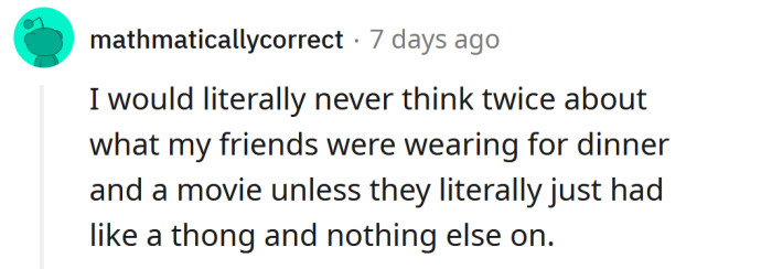She said the OP's outfit was "inappropriate" for what they were doing.
