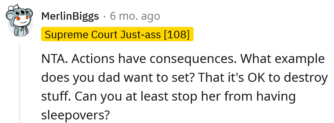 But the OP's mom said she should "let it go" since her sister didn't know any better. The Redditor told her mom that if her sister wasn't going to pay, then she wanted her and her dad to pay for it.
