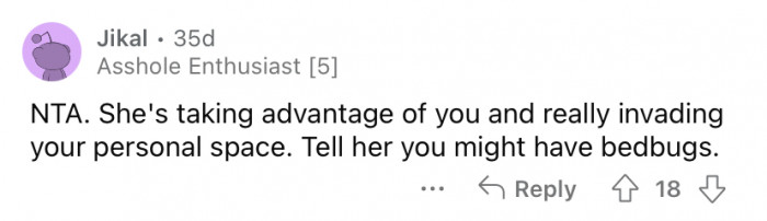 OP told her she could sleep on the couch because it made her uncomfortable that Ana was intruding on her personal space. But Ana got upset and told OP she wasn't being compassionate about her situation.