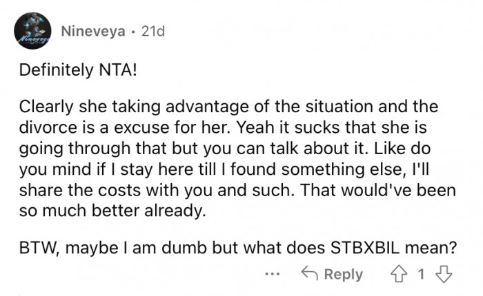 OP told Ana to stop using all of her things and eating her food since she no longer lives in the house or contributes to the bills. Ana started crying and left the house very upset.