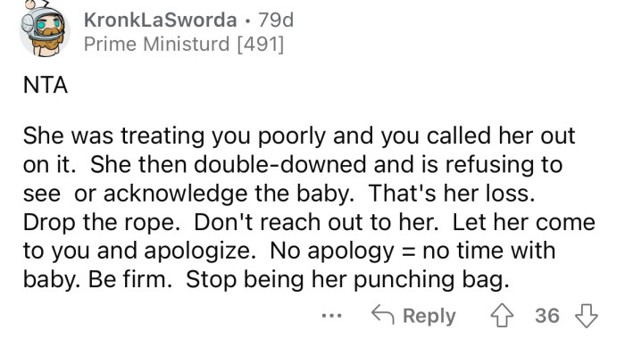 Since then, the OP has had her baby, and her sister still won't speak to her. She hasn't met the baby yet or even congratulated the OP.