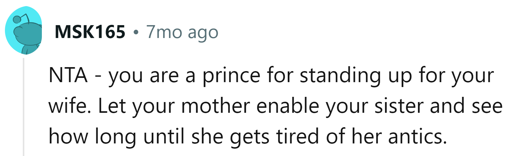 What are your thoughts on this situation? Do you think the OP was overreacting here, or did his sister deserve the serve he gave her for taking advantage of his wife?