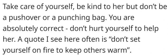 "Don’t set yourself on fire to keep others warm."