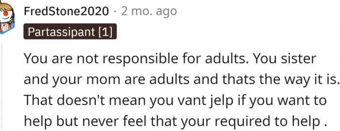 RedditThe sister says it is hurtful to see him like that. But OP believes that she should spend more time with him.
