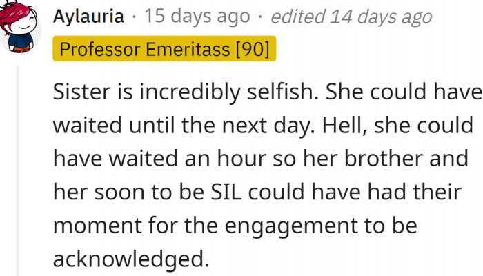 Redditor Doesn't Want To Go To Sister’s NY's Party After She Overshadowed His Engagement
