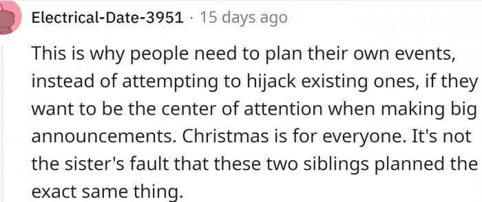 RedditEveryone was excited about it, but then the focus shifted to his sister's pregnancy announcement.