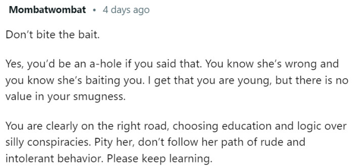 As they navigate these choppy waters, OP is starting to display a touch of arrogance, even though their frustration is somewhat understandable. However, it's crucial to remember that everyone has their own understanding and perspective of the world, shaped by unique experiences and information sources.