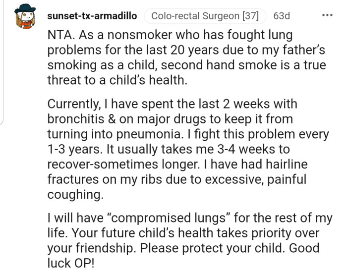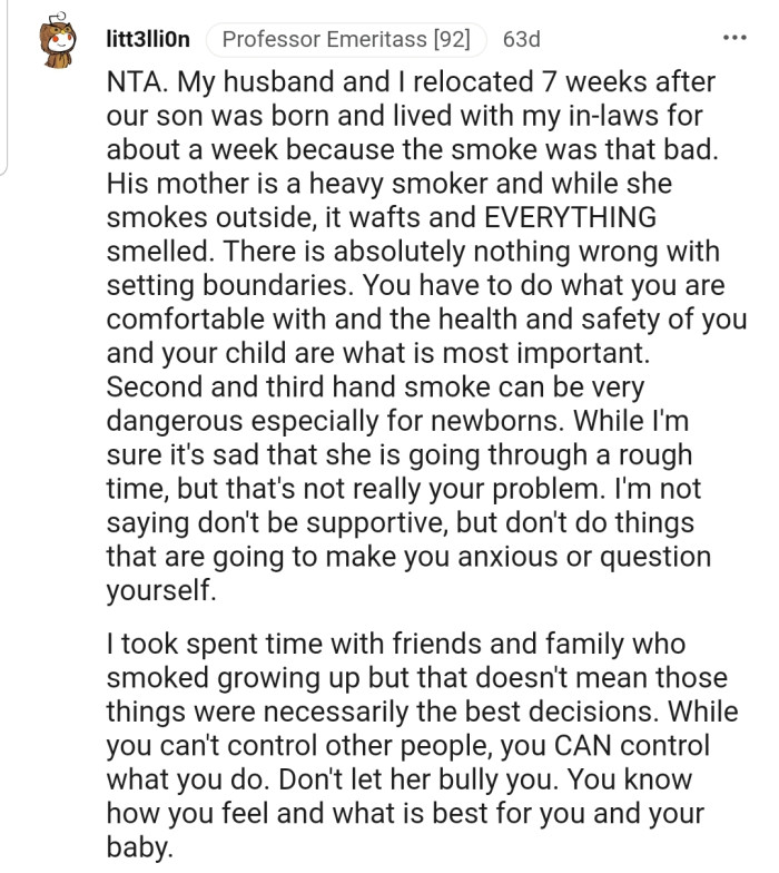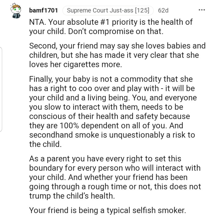 This is why one Redditor refused to allow her friend to visit her during pregnancy until she quit smoking.