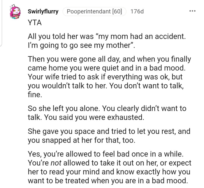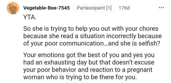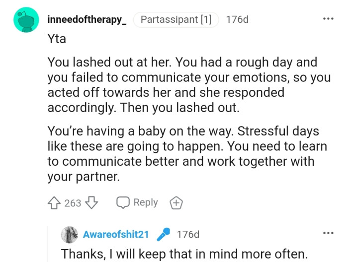 "Your emotions got the best of you and yes you had an exhausting day but that doesn’t excuse your poor behavior and reaction"