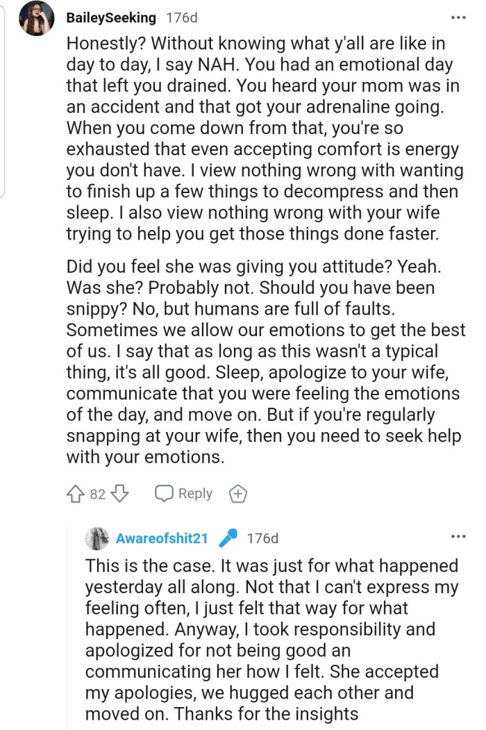 Relieved yet emotionally drained, OP returned to his parents' home to spend time with his mother until she fell asleep.
