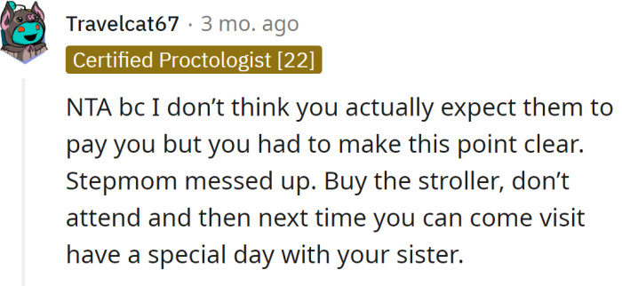 In this case, the Redditor might benefit from asserting her boundaries with the stepmom in a calm and respectful manner, emphasizing her commitment to family while also standing firm on her needs.
