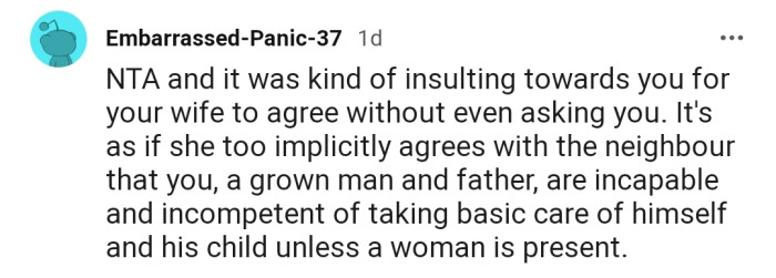 "NTA, and it was kind of insulting towards you for your wife to agree without even asking you."