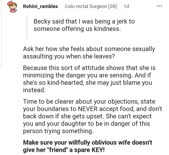 Becky was clearly disappointed by this and called OP out for being a jerk over a harmless, kind gesture. Now OP feels torn—Is there a possibility he was overreacting, or is his discomfort genuinely warranted?