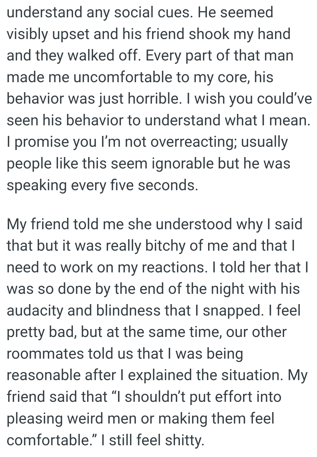 "I shouldn’t put effort into pleasing weird men or making them feel comfortable."