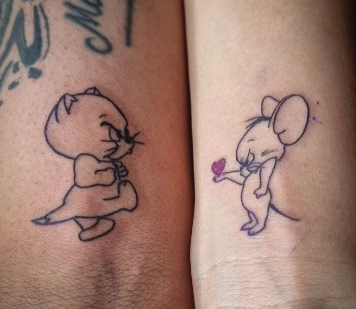 "Cute Couple Tom And Jerry Tattoo On Your Skin Forever With You"