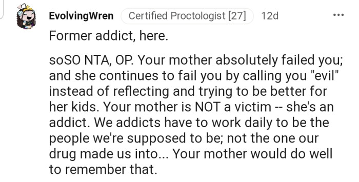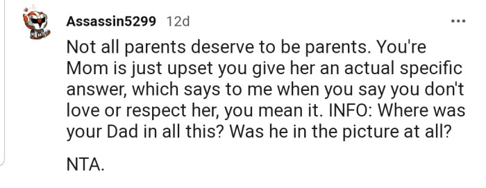 Do you think OP was too hard on his mom for telling her exactly how he felt? Let us know in the comments below!