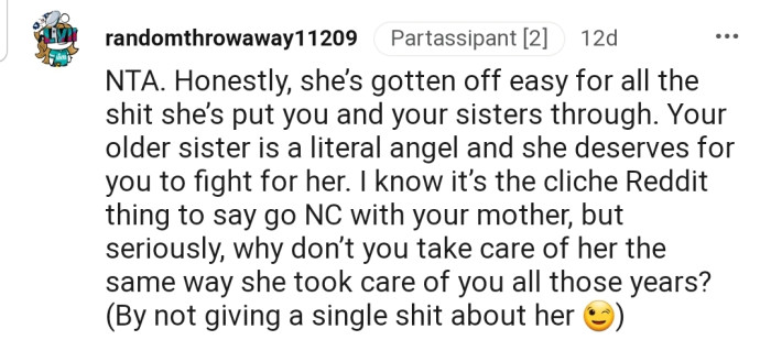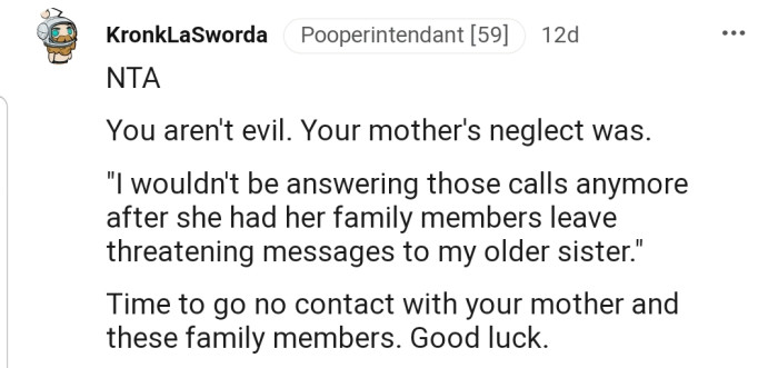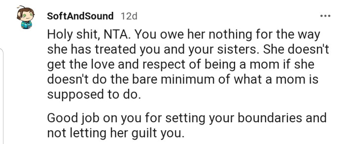 If the Reddit community were to judge, OP’s mother wouldn’t win any parenting awards. They all agree that OP is NTA, and his mother was.