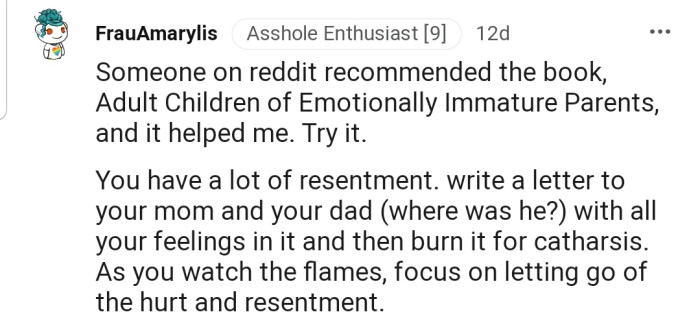 "Someone on Reddit Recommended the Book, Adult Children of Emotionally Immature Parents, and It Helped Me. Try It."