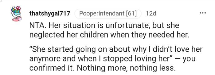 "Her Situation Is Unfortunate, but She Neglected Her Children When They Needed Her."