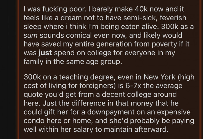 "I don’t view paying $300,000+ for a career that tops out at $60,000 as a wise investment."