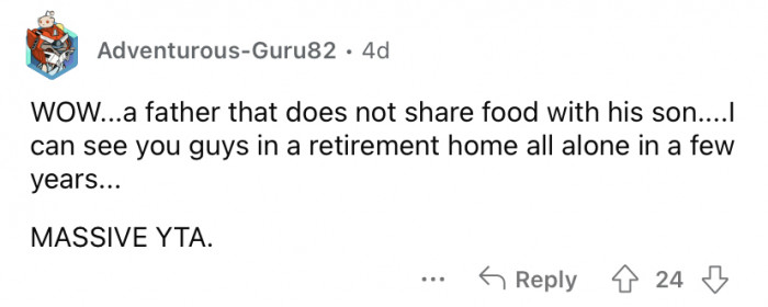 What's your take on this situation? Do you think the OP should stand up for her son more, or is she right for not allowing Adam to eat his father's food?