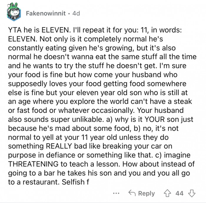 Mother Gets Schooled By Reddit After Complaining About Her 11-Year-Old Son Eating His Dad's Expensive Food Leftovers