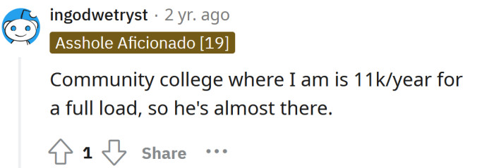 RedditThe OP explained that she and her husband offered to pay for their son's college right after he graduated.