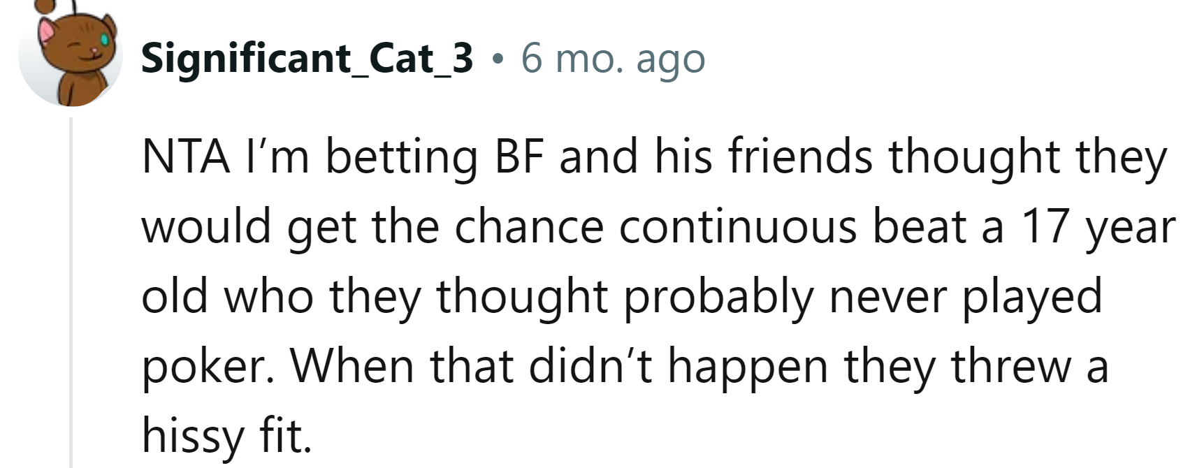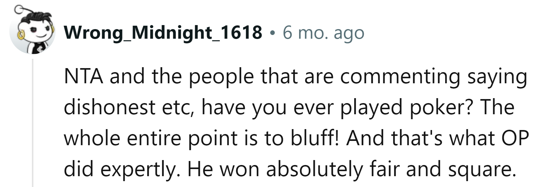But what the boyfriend didn't realize was that the OP is actually very good at poker.