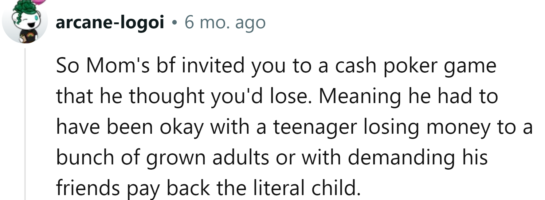 But what the boyfriend didn't realize was that the OP is actually very good at poker. It didn't take long for the Redditor to discover that his mom's boyfriend and his friends were not good at it at all.
