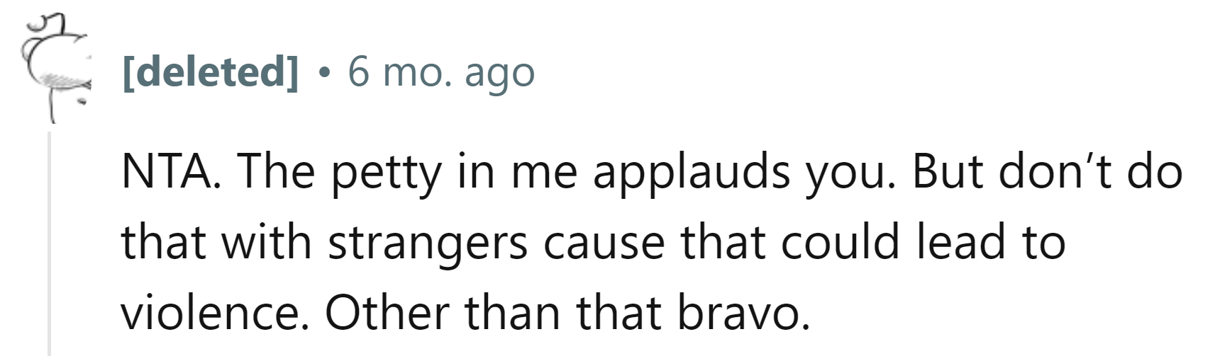 "The petty in me applauds you."