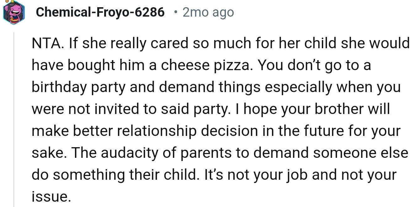 Redditors rallied behind OP, recognizing her not as a bully but as a frazzled mother juggling the demands of a bustling birthday bash.