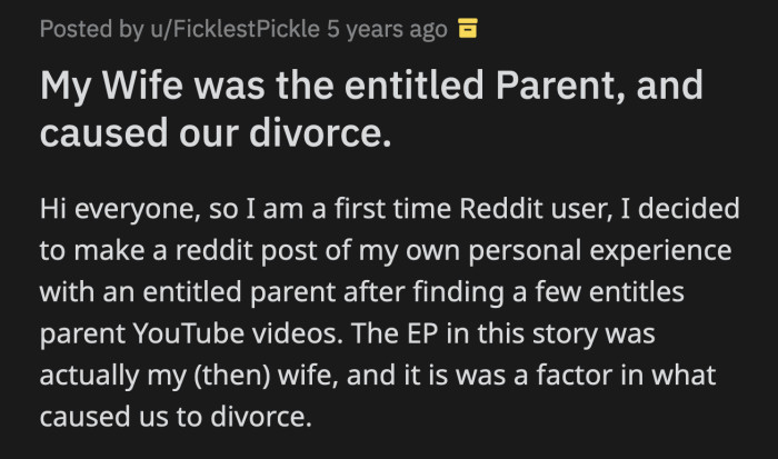 We often hear accounts of people who have had the misfortune of crossing paths with an entitled person. In this Reddit post, we see the perspective of someone who was married to an entitled individual.