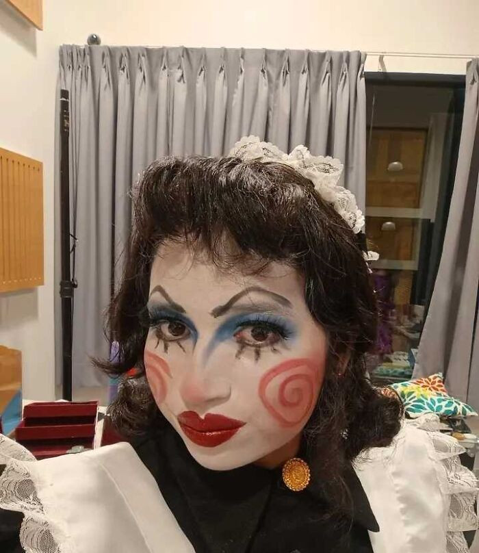 Under harsh theater lights and from dozens of meters away, performers need faces that read clearly, dramatically, and without apology. What looks polished and expressive to the audience is often shocking when seen up close.