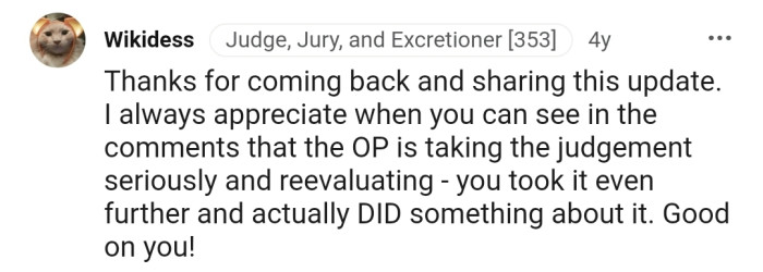 "I always appreciate when you can see in the comments that the OP is taking the judgment seriously and reevaluating"