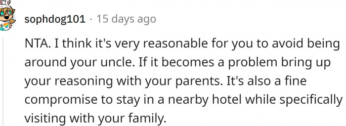 Redditor Doesn't Want To Spend Holidays In Her Parent's House Because Of Her Freeloading Slob Uncle, Wonders If They Should Stay In Hotel