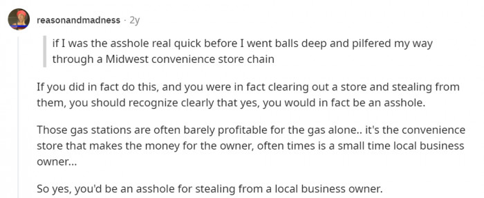 Guy Asks If It Is Wrong To Constantly Get Stuff From A Convenience Store Without Paying