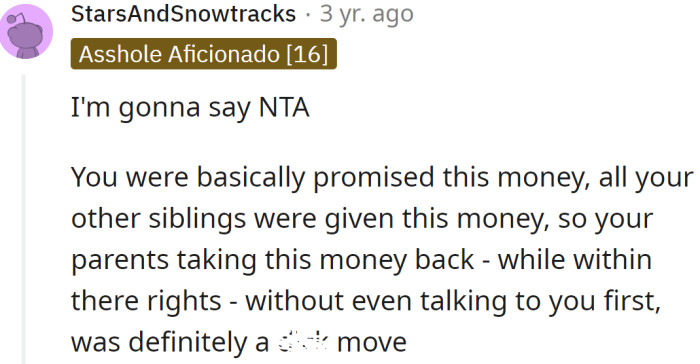 Now the OP's parents claim they get to choose what they'll do with their money.