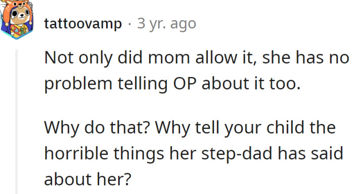 "Not only did mom allow it, she has no problem telling OP about it too."