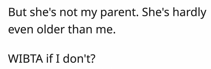The thing is, OP does not think of Sarah as her parent because she's hardly a year older than her. Is OP a j*rk for leaving Sarah out?
