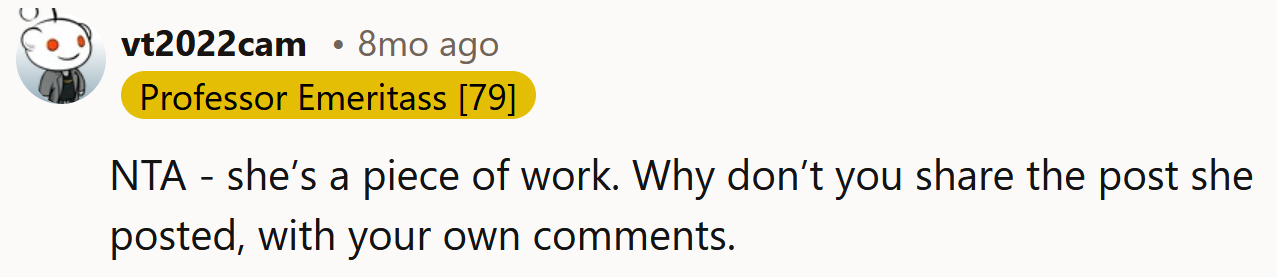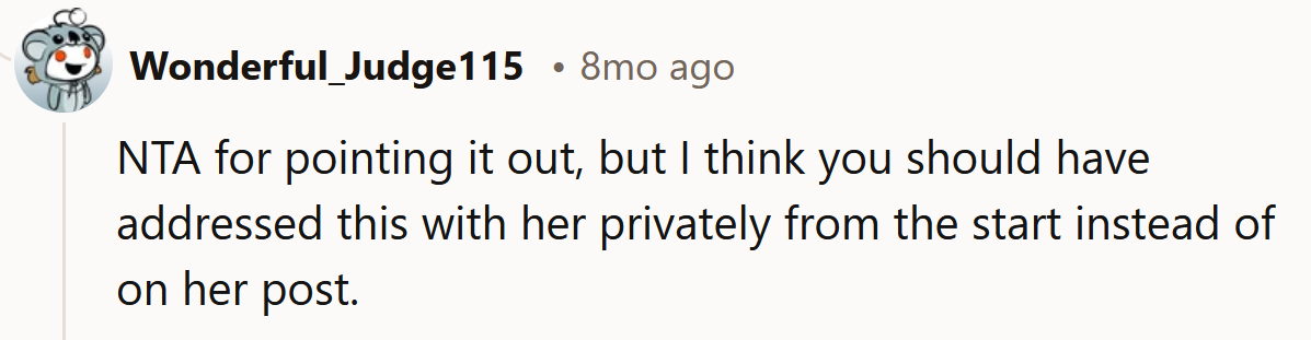 The Redditor's sister then deleted her post and reposted it without the OP's comments. Now, the Redditor is wondering if she's the a**hole here.