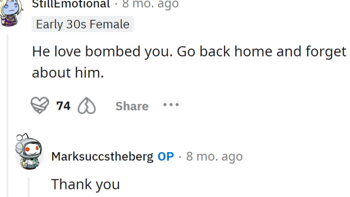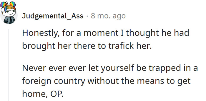 According to Redditors, she was in a toxic relationship, so she should be thankful that everything is over and that she made it home safely.