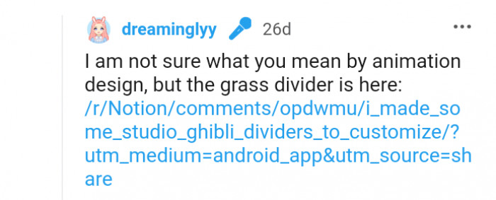 ... Get the grass divider here: https://www.reddit.com/r/Notion/comments/opdwmu/i_made_some_studio_ghibli_dividers_to_customize/?utm_medium=android_app&utm_source=share