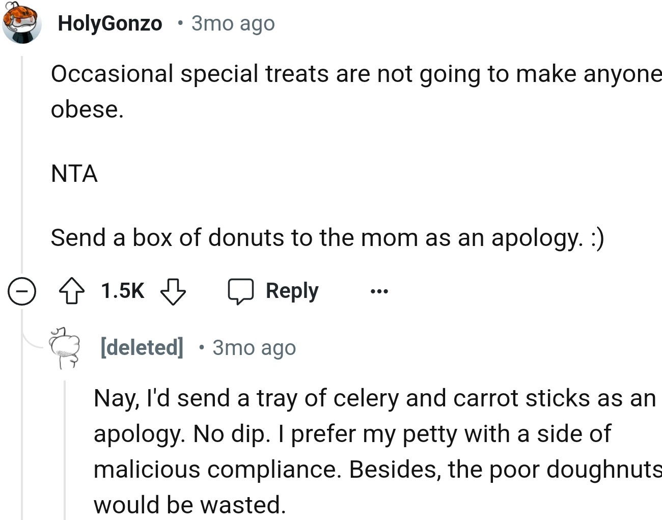 "Send a box of donuts to the mom as an apology"