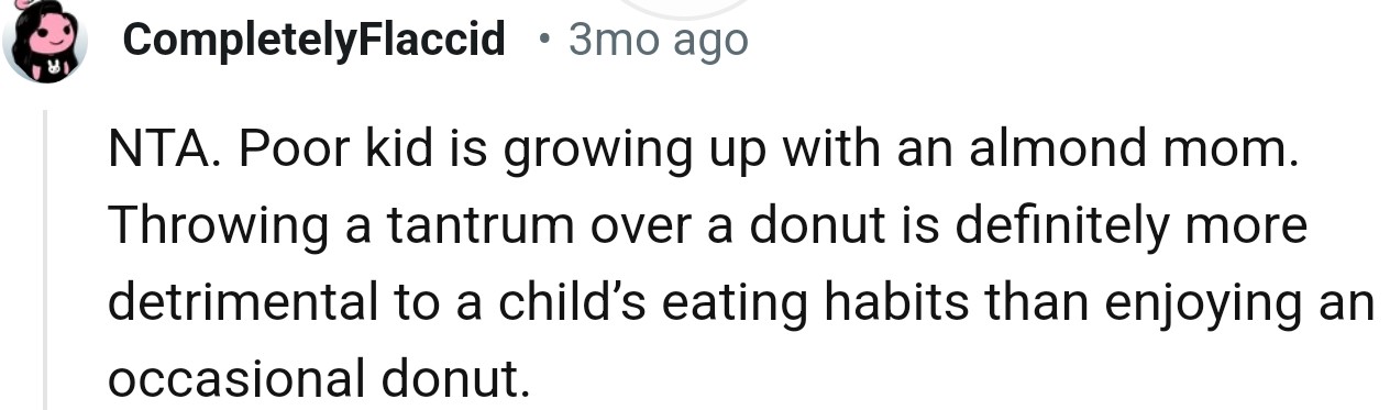 "Poor kid is growing up with an almond mom."