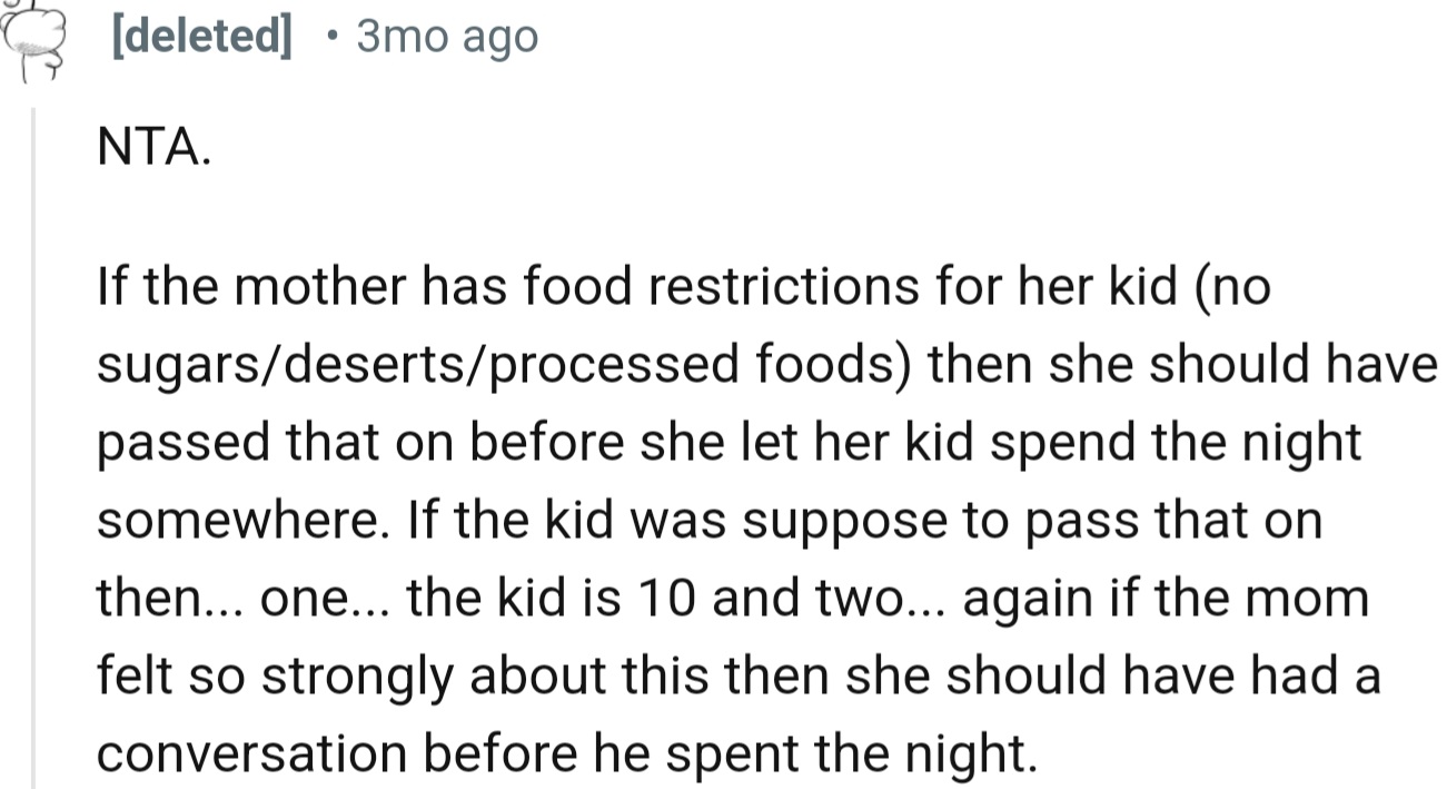 "If the mom felt so strongly about this, then she should have had a conversation before he spent the night."