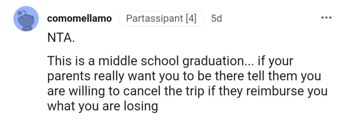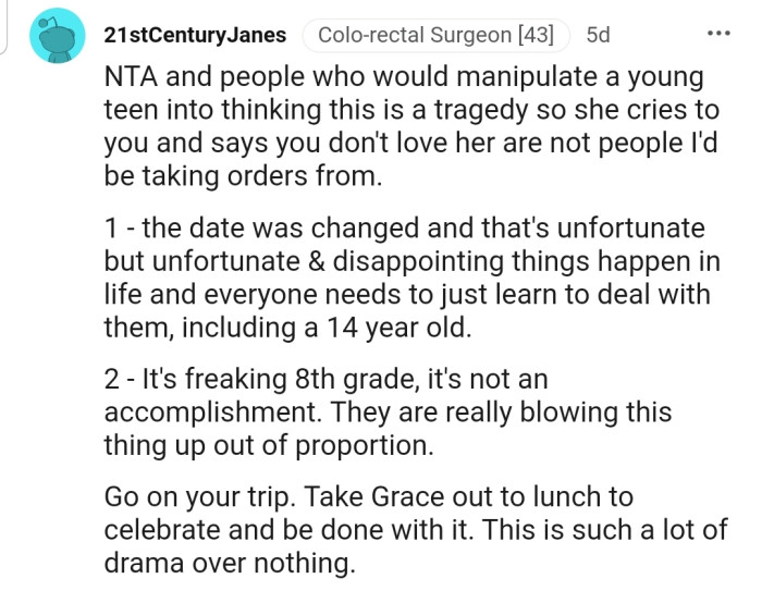 This Redditor doesn't think a middle school graduation is worth the cancellation.